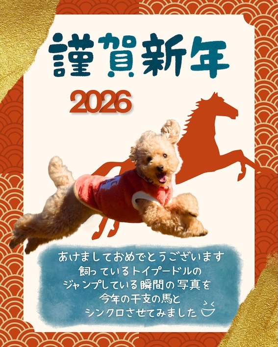 あけましておめでとうございます 2026年1月1日 最終更新日時 : 2026年1月6日 MW 最近1年があっという間に感じてしまいます…今年1年、充実し、年賀状の愛犬の様に飛躍の年にしたいと思います。